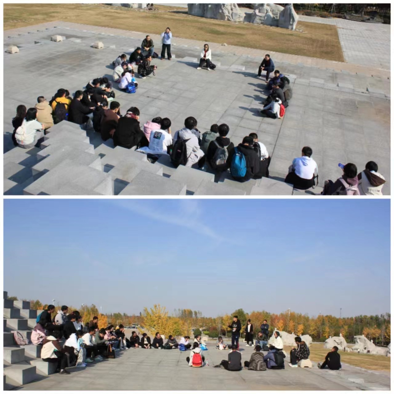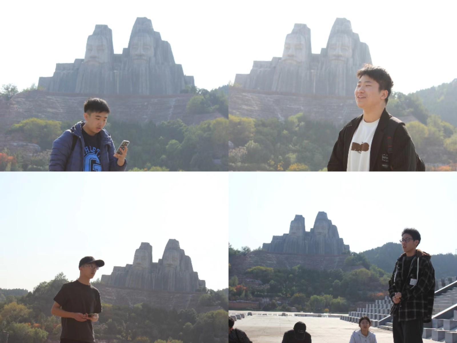 溯源炎黄脉,寻根黄河边。黄河流域是中华五千年文明史的发祥地之一。远古时代,华夏先民在黄河母亲的怀抱中繁衍生息,创造了辉煌灿烂的中华文化。而开创中华文明的炎帝神农氏和黄帝轩辕氏被敬奉为中华民族的人文始祖。在这里师生们重点探究了炎黄二帝雕塑选址邙山的地理与文化考量——邙山作为黄河中下游的重要地理地标,位于黄土高原与华北平原过渡带最东南缘的黄土塬,地势高亢视野开阔,既便于俯瞰黄河,又承载着“根在中原”的文化寓意。师生们还从历史、艺术等跨学科角度探讨了雕塑的修建历程与“雄伟庄重、意蕴深远”的艺术内涵,以及广场上钟、鼓、龙柱、祭坛等元素所蕴含的寻根溯源、祭祖祈福的文化内涵,让学生在触摸历史遗存中增强文化认同。在哺育广场的黄河母亲像前,学生们驻足凝视,感受雕塑所传递的母爱与包容,深刻理解黄河与华夏民族的血脉联系。