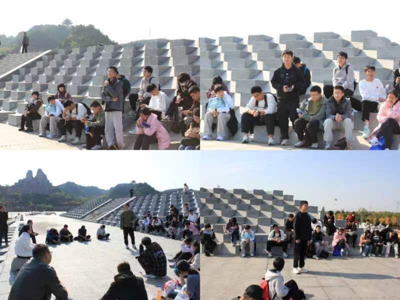 重温伟人嘱,初心永不忘。师生们通过珍贵的历史照片与文献资料,重温了1952年毛泽东主席登邙山、望黄河时发出“要把黄河的事情办好”的伟大号召。师生们感受到了主席对黄河治理的深切关怀与战略考量,以及新中国成立以来黄河治理取得的历史性成就——从防洪减灾体系的完善到水资源的科学调配,从生态环境的修复到文化遗产的保护,正是一代代中华儿女践行伟人嘱托的生动实践。站在小顶山远眺黄河奔腾东流的壮阔景象,同学们深切感受到老一辈无产阶级革命家的远见卓识,纷纷表示要将主席的嘱托牢记心间,以奋斗姿态传承治水精神,为国家发展贡献力量。