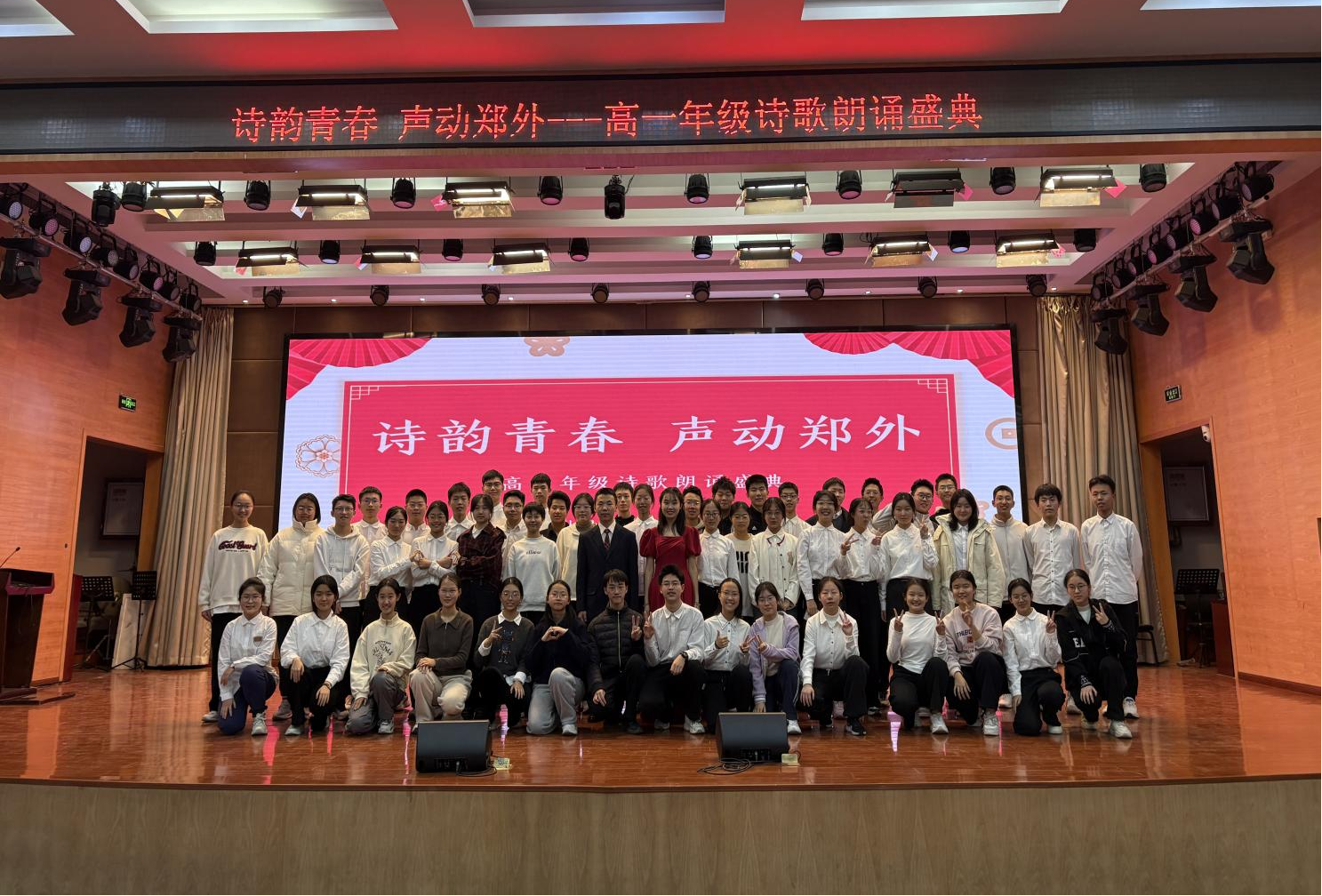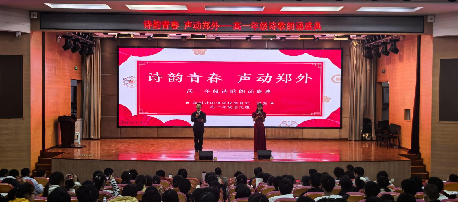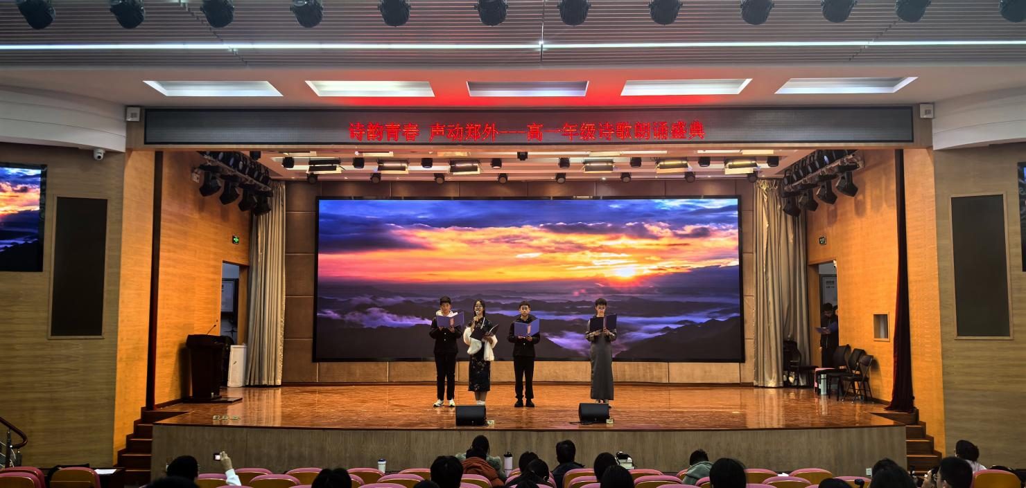 少年意气藏诗间,青春韵律映家国。2025年12月上旬,值中华人民共和国成立76周年、抗日战争胜利80周年之际,郑州外国语学校高一年级举行诗歌朗诵会,用铿锵韵律展现青春风采,以动人诗篇抒发爱党、爱国、爱校的深厚情怀。