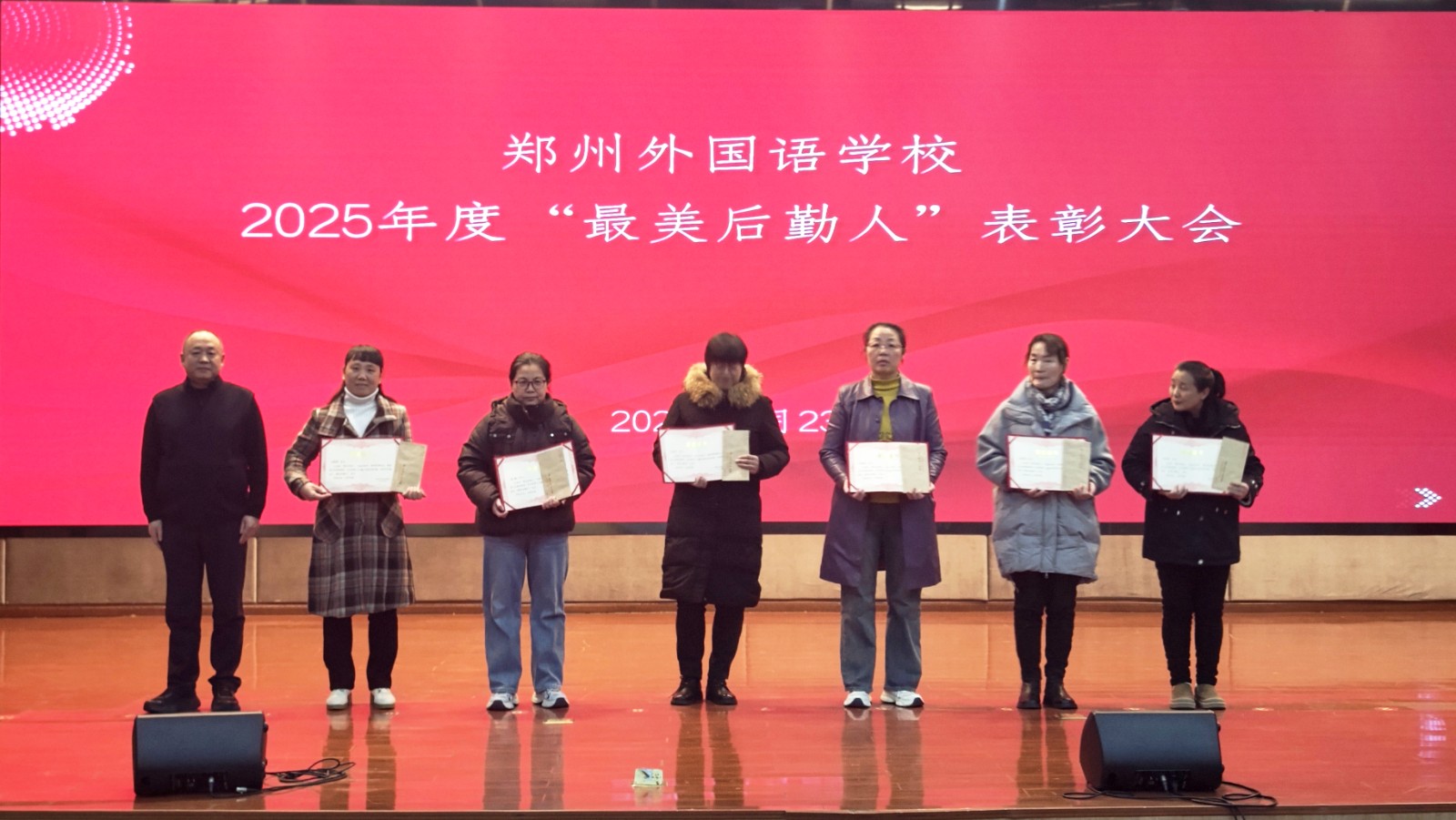 1月23日下午,郑州外国语学校隆重举行2025年度“最美后勤人”表彰大会。校领导、后勤部门负责人、服务企业代表及全体后勤工作人员出席大会,共同见证这一荣誉时刻。